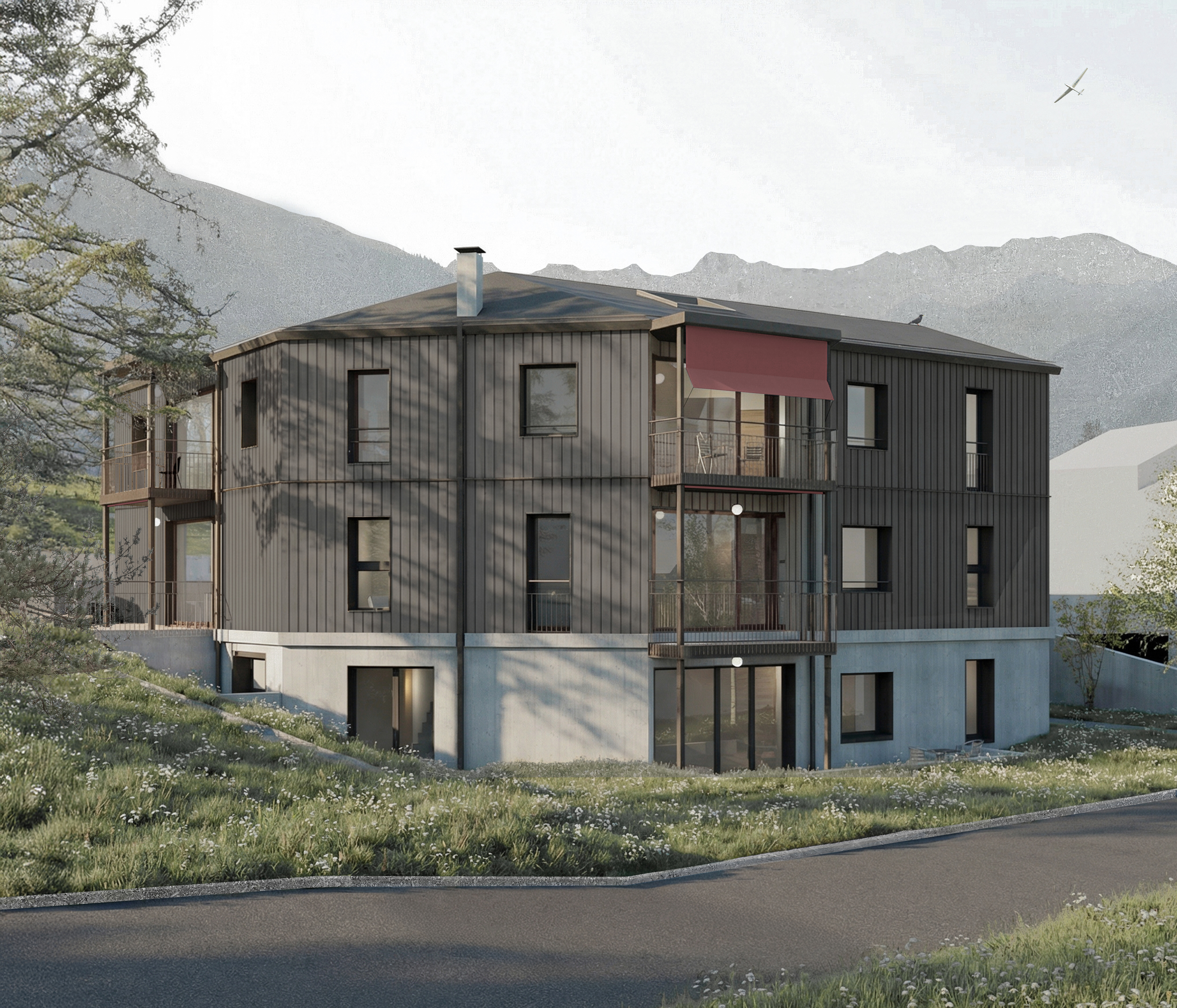 In Pros da God Pontresina, a distinctive multi-family residence is being created, comprising two primary residences and three secondary residences.